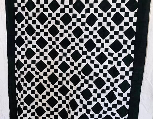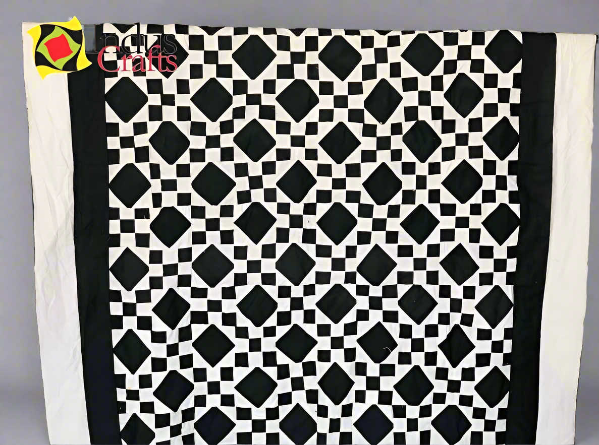 Bring a touch of modern elegance to your home with this stunning geometric diamond ralli from Indus Crafts. This handcrafted piece showcases the timeless beauty of black and white, featuring a bold and captivating pattern achieved through intricate embroidery and appliquรฉ techniques. The ralli is meticulously crafted with a repeating diamond design, creating a visually striking and symmetrical composition. The contrasting black and white fabrics are carefully stitched together, and the detailed embroidery and appliquรฉ work add a layer of texture and dimension, demonstrating the skill and precision of local artisans.This ralli is not just a textile; it's a piece of art that adds a touch of contemporary flair to any space. Perfect as a bed covering, wall hanging, or decorative throw, this ralli brings a unique blend of traditional craftsmanship and modern design to your home. Notice the unique Indus Crafts tag, a symbol of authenticity and support for local artisans. By purchasing this ralli, you are contributing to the preservation of traditional crafts.This geometric diamond ralli with embroidery and appliquรฉ is a beautiful example of the skill and creativity found in handcrafted products. Add a touch of authentic Pakistani style to your home with this unique piece from Indus Crafts.