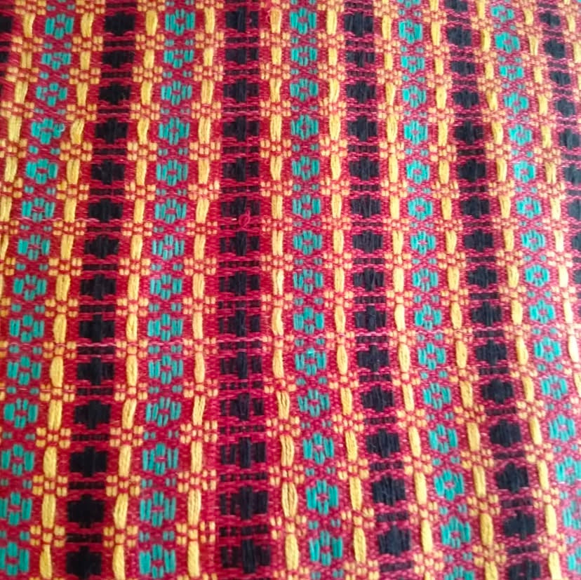 Radiating warmth and tradition, this stunning handwoven khes shawl is a bold statement piece infused with rich cultural heritage. Featuring a captivating combination of deep reds, burnt oranges, and golden yellow tones, its intricate geometric weave forms a rhythmic pattern reminiscent of glowing embers on a cool evening.