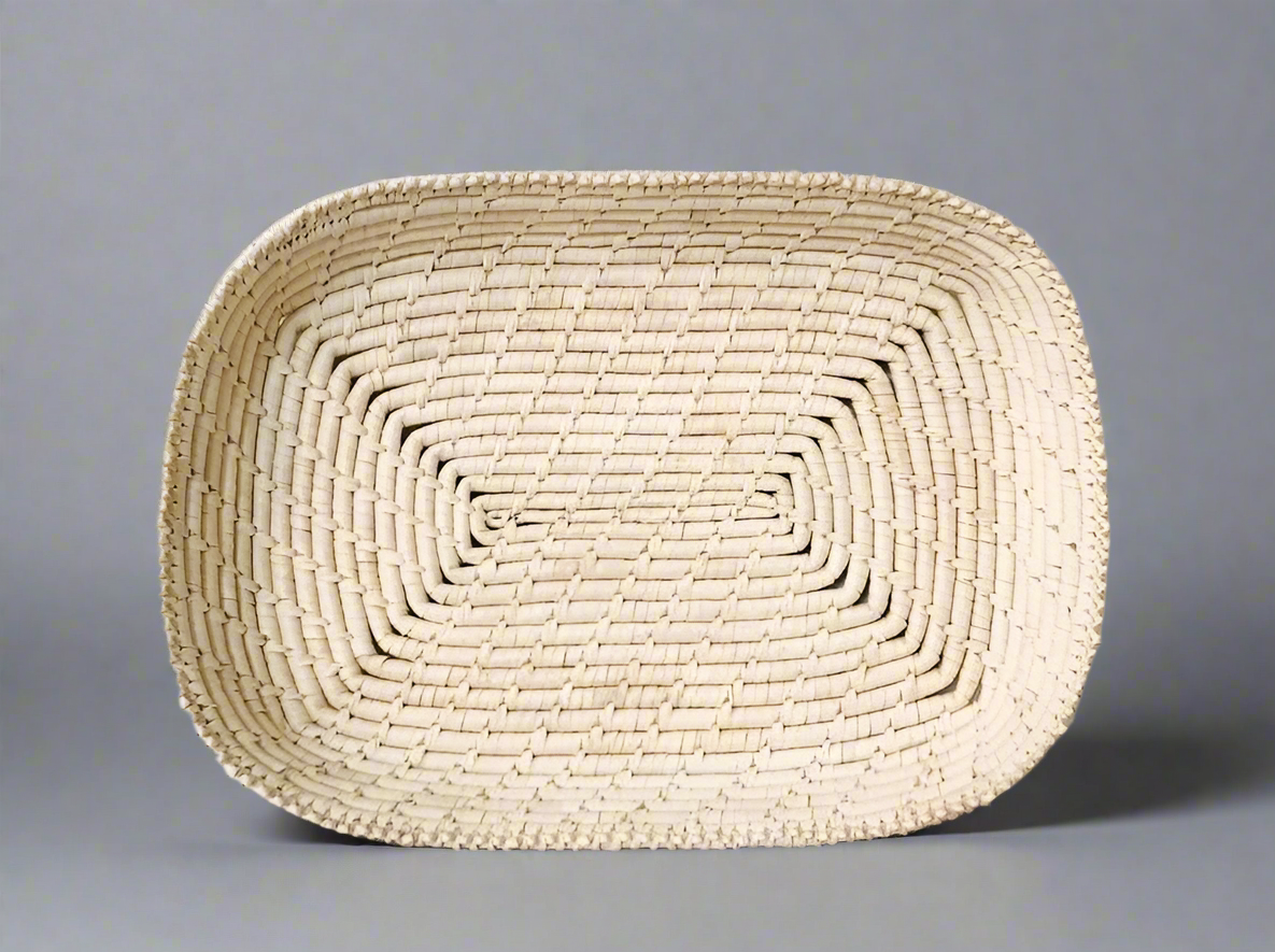 Elevate your dining and home decor with this exquisite handmade woven serving tray. Crafted from natural fibers, this tray showcases a beautifully intricate weaving pattern that highlights traditional craftsmanship while ensuring durability and strength. The rectangular shape with slightly raised edges provides a practical design, making it perfect for serving food, displaying decorative items, or organizing essentials in a stylish manner.