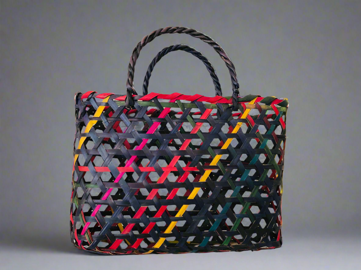 Thisย handcrafted basket bag boasts a stunning multicoloured design, making it a perfect accessory for any outfit. Each bag is meticulously crafted for a unique, one-of-a-kind look. The perfect blend of fashion and functionality, this bag is a must-have addition to your collection. It's a fashion-forward and functional addition to any outfit. Crafted with meticulous attention to detail, each bag features a stunning, one-of-a-kind multicoloured design. A must-have for any collection, it seamlessly combines style and practicality.