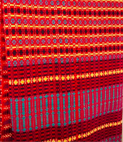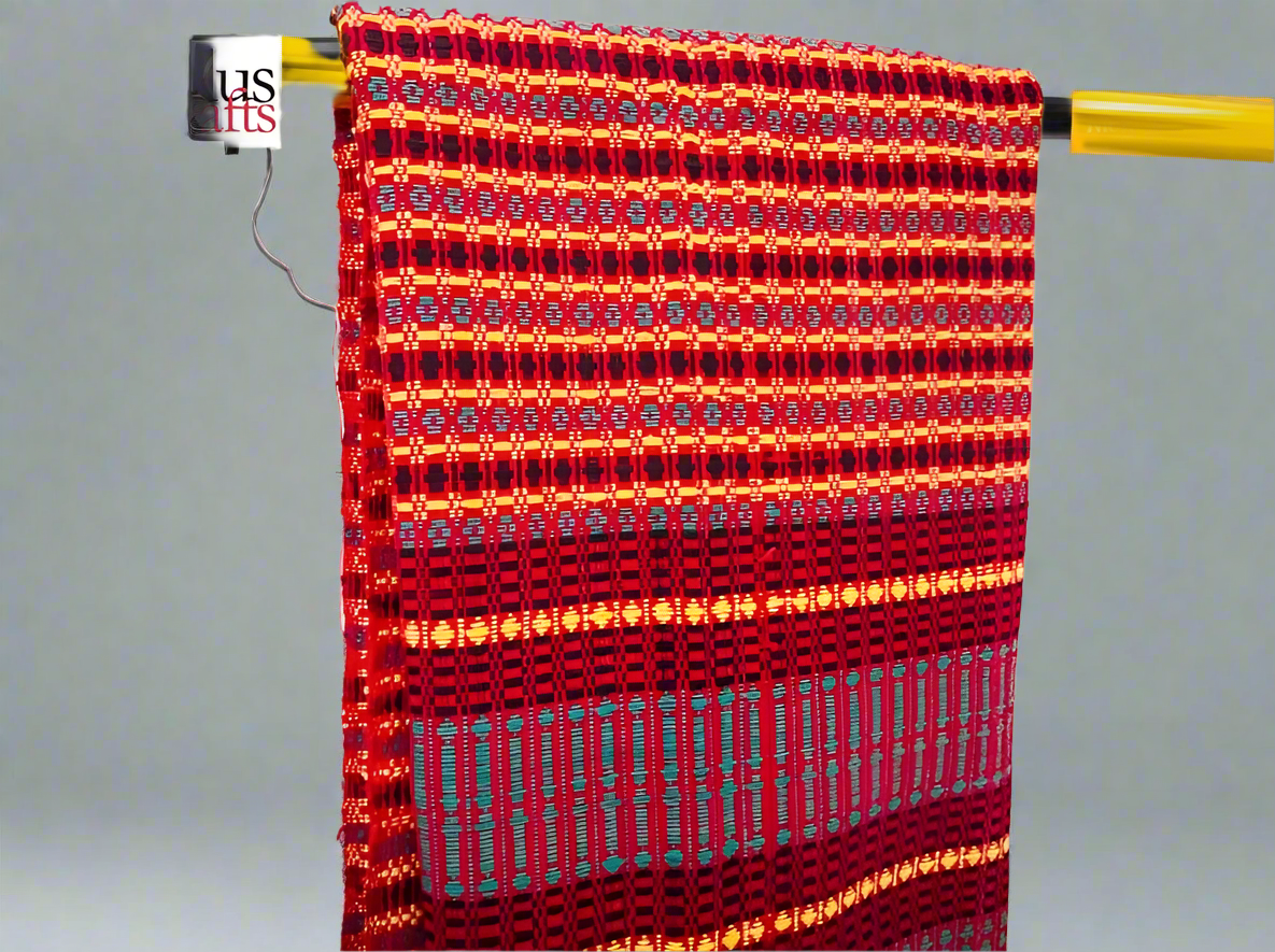 This traditional cotton Khes is a stunning example of handloom weaving, featuring bold geometric patterns in rich red, yellow, and blue hues. The intricate weave creates a textured surface, making it both aesthetically appealing and functional. Khes textiles are commonly used as bedspreads or shawls, offering warmth and comfort. This piece, crafted with precision by skilled artisans, reflects the vibrant cultural heritage of South Asian weaving traditions.