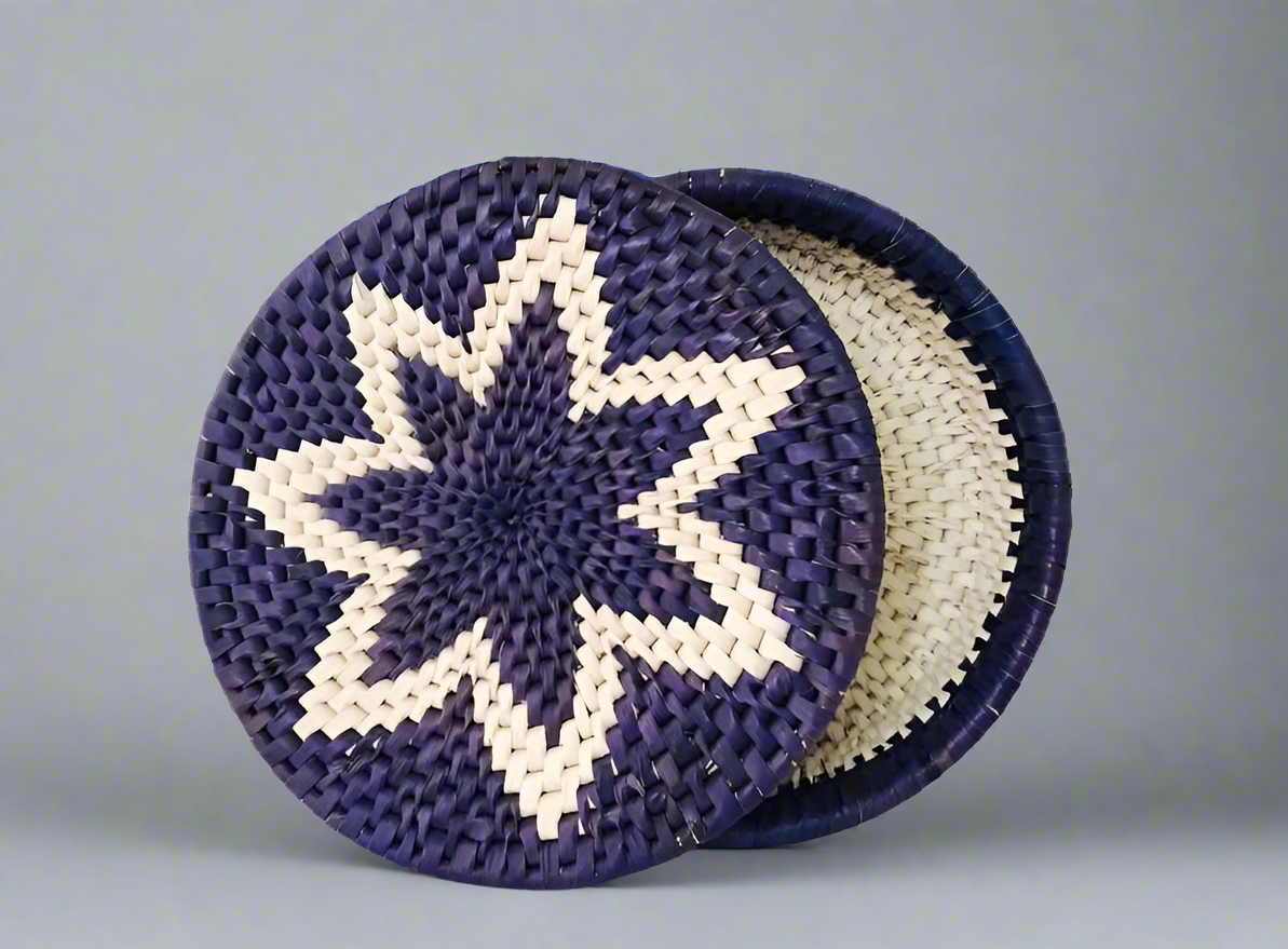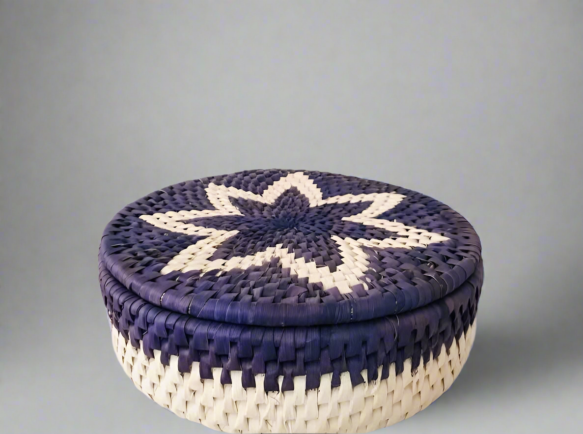 This exquisite handwoven hotpot and cover features a stunning blend of deep purple and white in a captivating starburst pattern. Crafted with precision using natural fibers, it adds a touch of traditional artistry to your dining table while keeping your food warm. The tightly woven design ensures durability, making it a perfect blend of functionality and style. Ideal for family meals, gatherings, or simply enhancing your kitchen aesthetics, this hotpot cover is a must-have for those who appreciate handcrafted beauty and cultural heritage.