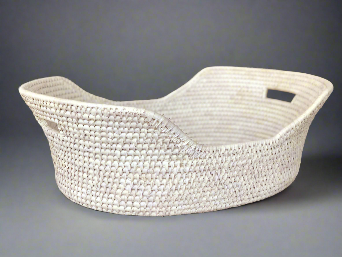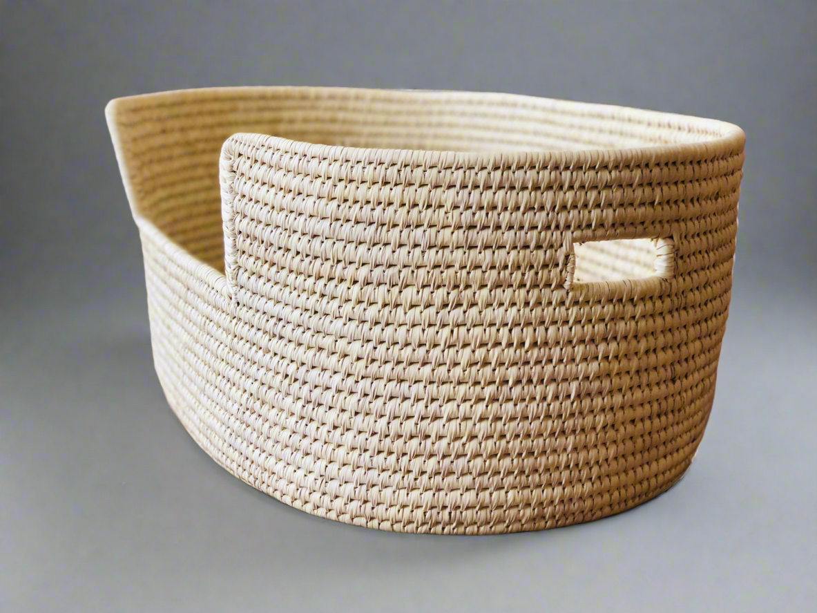 This elegantly woven natural palm leaf basket is a versatile storage solution. Its open design and sturdy craftsmanship make it perfect for holding blankets, magazines. Handmade by skilled artisans, this basket combines sustainability with timeless style. Experience handmade quality and practicality with our versatile woven basket. Keep your home neat and stylish as you store blankets, magazines or pet essentials. Our skilled artisans use natural palm leaf to create a sturdy and sustainable design perfect for any room.
