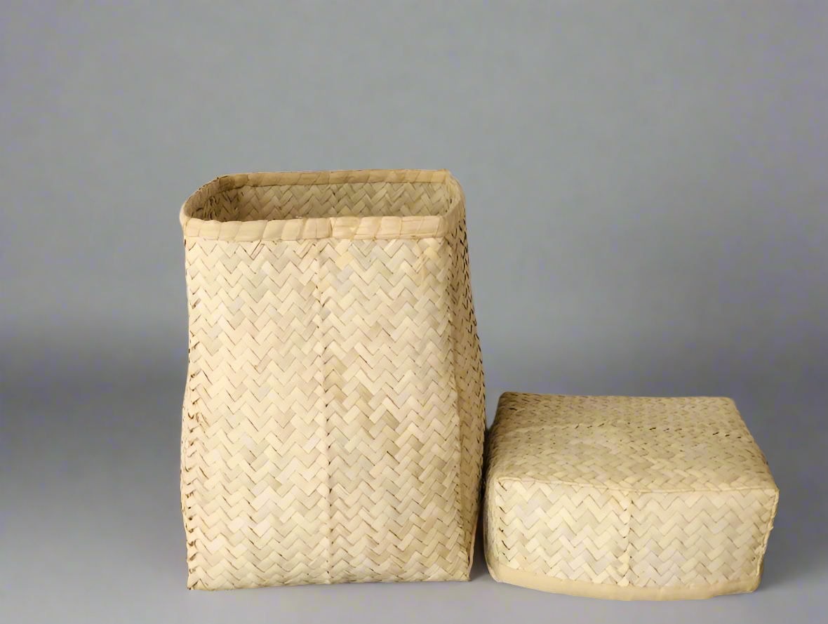 Crafted from natural date palm leaves, this beautifully handwoven storage basket brings an earthy, rustic charm to any space. The intricate weaving showcases traditional craftsmanship, creating a piece that is both functional and visually appealing. Its neutral tones and timeless texture allow it to seamlessly blend with various home decor styles, from minimalist to bohemian. This versatile basket can be used for storing household essentials, organizing everyday items, or even as a decorative accent. Lightweight yet sturdy, it is designed for durability while maintaining an organic and natural aesthetic. Each basket is handmade, making every piece unique with slight variations that add to its character. Whether placed in the living room, bedroom, or entryway, it enhances the space with its warmth and artisanal appeal. A sustainable and stylish storage solution, this handwoven date palm leaf basket is a perfect addition to any home.