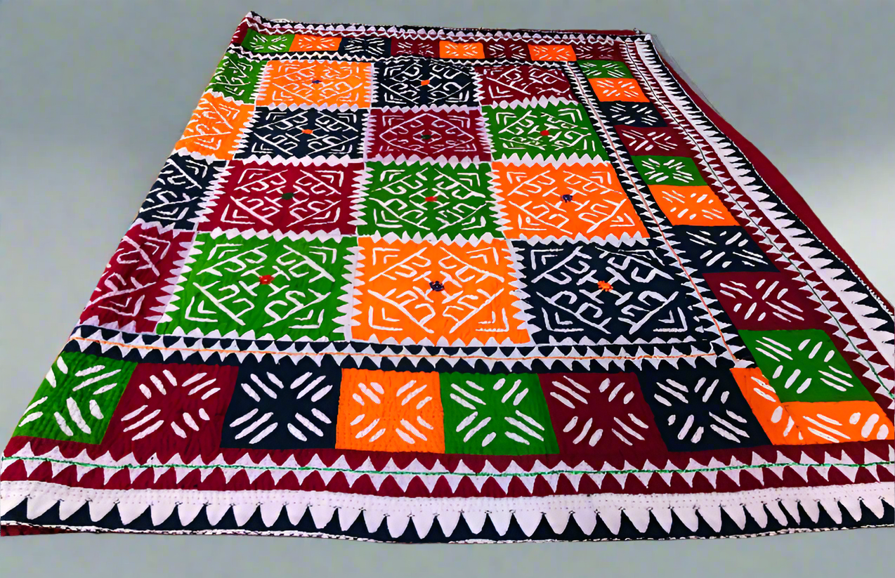 This ralli is more than just a textile; it's a testament to the enduring tradition of handcrafting in Sindh. Perfect as a statement piece for your home, whether draped as a bed covering, hung as a wall tapestry, or used as a unique throw, this ralli will add a touch of authentic Pakistani artistry to your space. Embrace the vibrant spirit of Sindh and support the skilled artisans who bring this beautiful tradition to life.